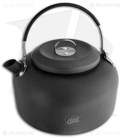 This hard anodized aluminum Water Kettle from Esbit is extremely light. It features a folding handle and can hold up to 1400 mL.