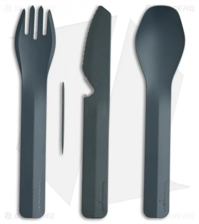 GoBites offer a civilized solution for cooking and eating on the go. The GoBites Trio is a convenient 3 piece utensil set for camping, travel, and fine backcountry dining. It includes a knife, fork, spoon, and a bonus toothpick that all store flat in a compact storage case. The Trio is made from a durable nylon material that is strong, lightweight, and BPA/PC/Phthalate free. This GoBites Trio model comes in a gray color.